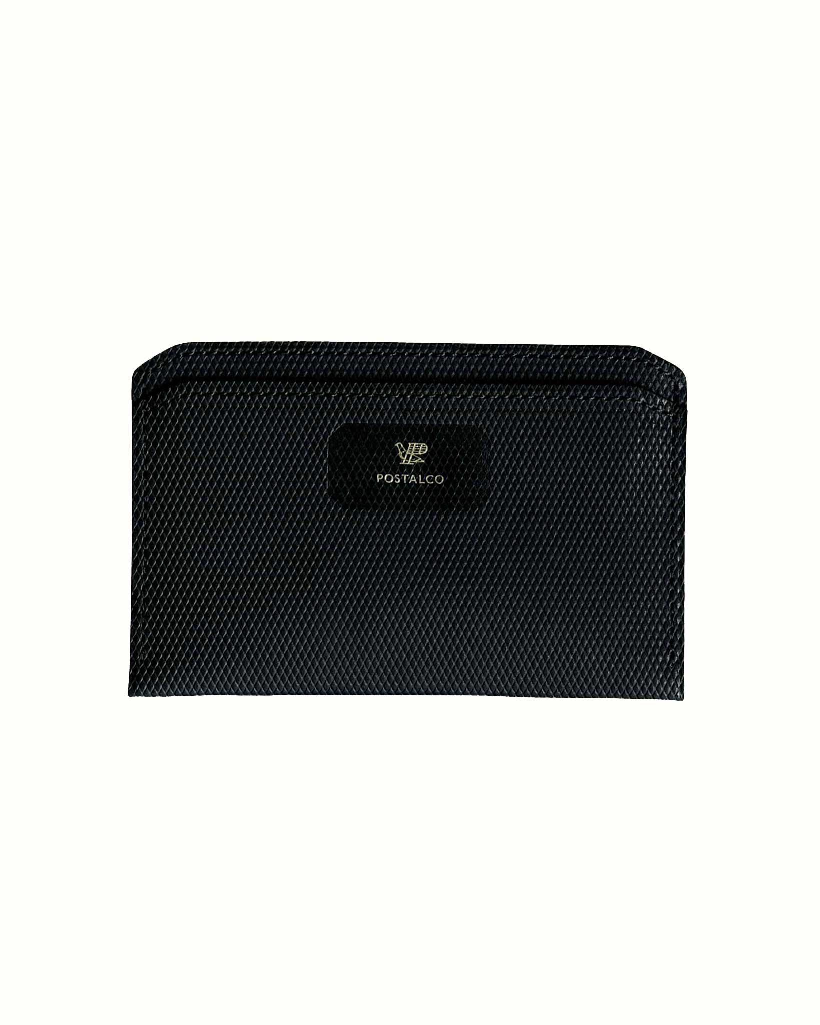 4つのポケットには、ICカードや名刺のほか、四つ折りのお札も収められます。約10枚のカードが収納可能。ポスタルコのクロスグレインレザーとピッグスキンの裏地。日本製。