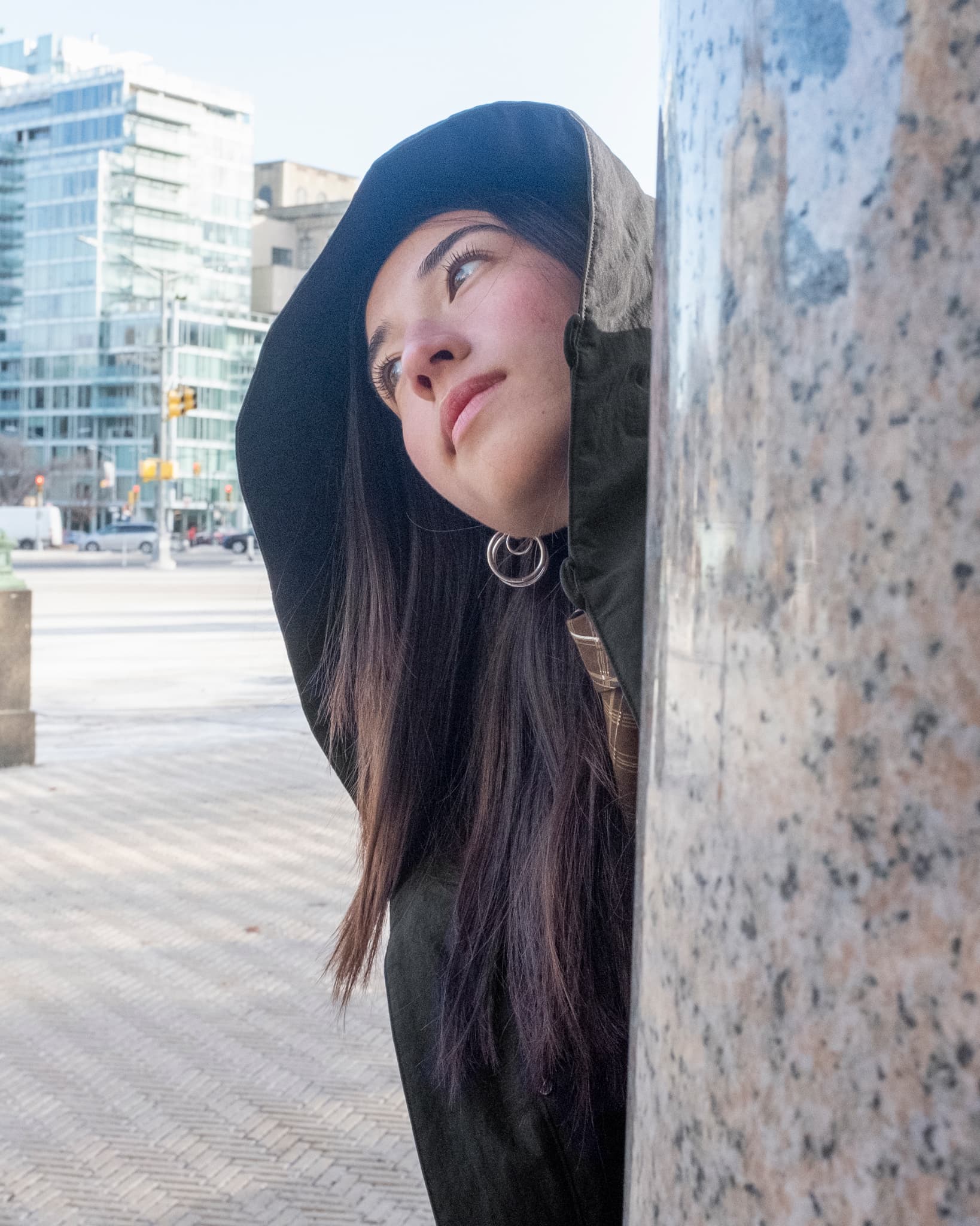 手を入れるポケットは、サイドシームになっていて目立ちません。