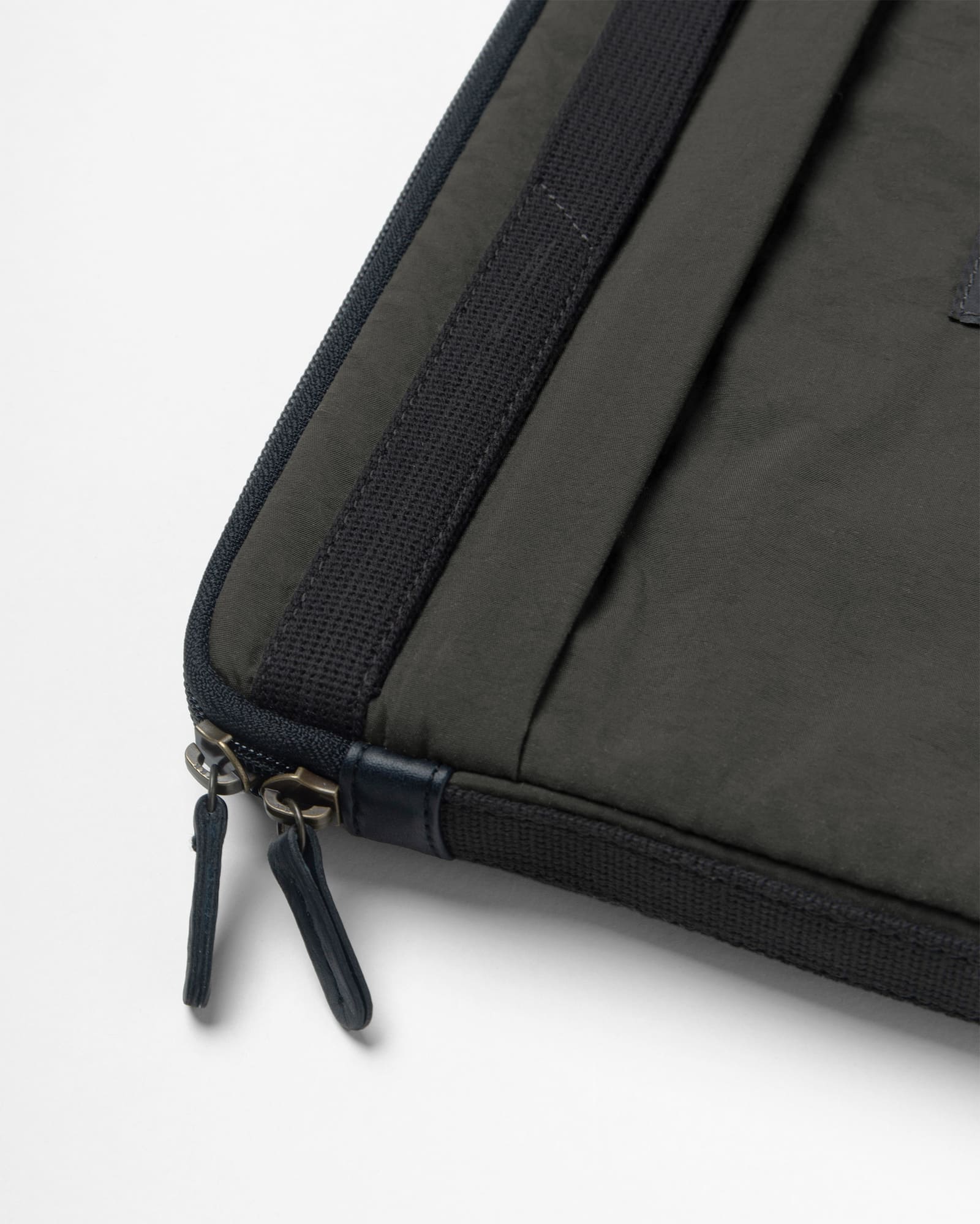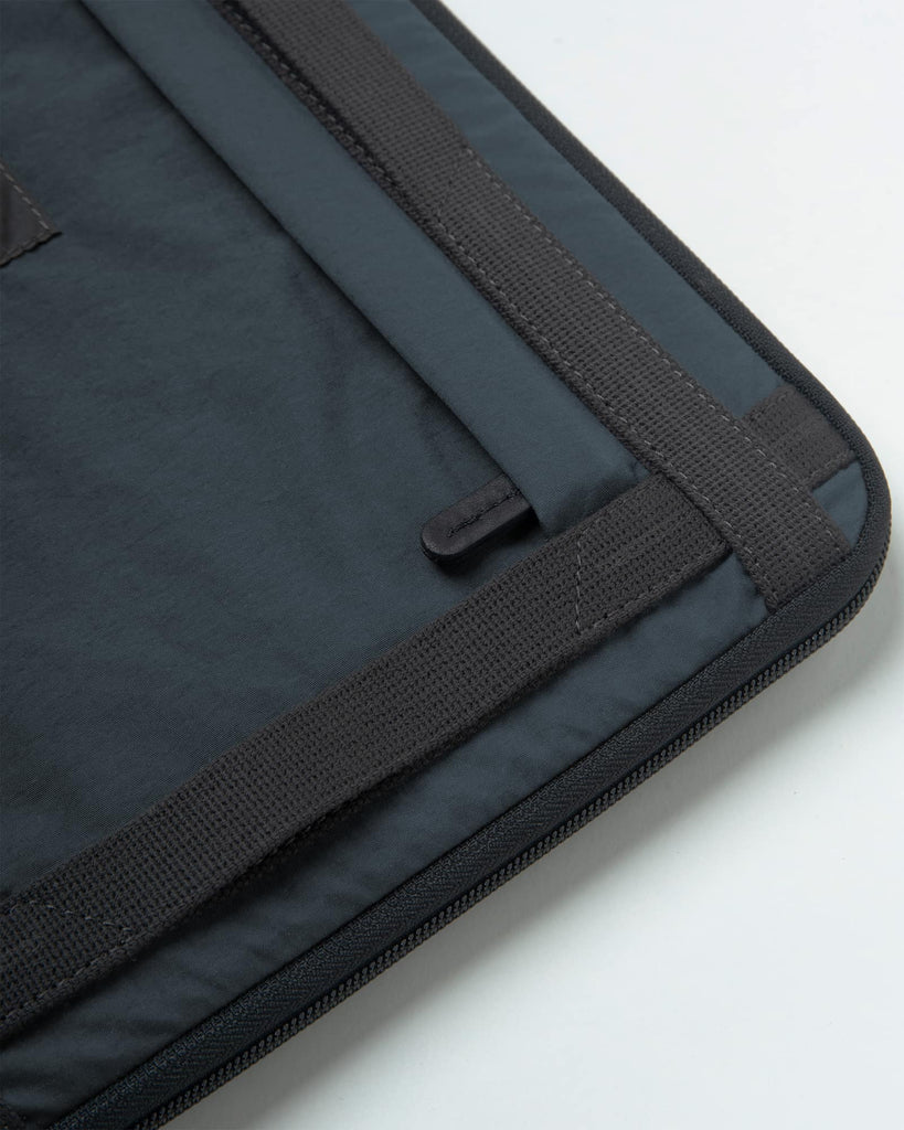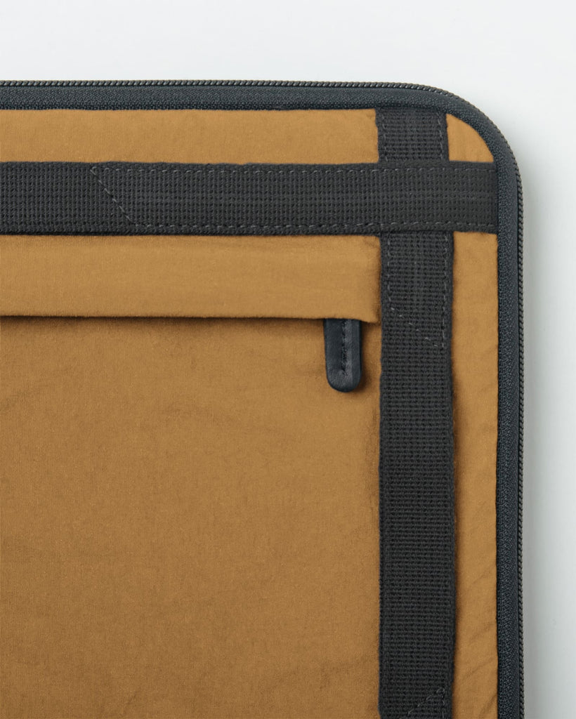 スリムでソフトタッチでありつつ日常の衝撃や傷を受けにくいようにデザインされています。MacBook Proの14インチに対応します。耐久性のあるレインウェア生地を採用し、フチをウェビングで補強。前面のジッパーポケットは、ケーブルやその他の小さな必需品を入れるのに最適なサイズなので、外出先でも万全の体制です。バックパックに縦に入れたり、トートバッグに横に入れたりと、用途に合わせて使い分けられます。スリーブの上部と側面にあるウェビングハンドルを使えば、バッグの奥深くに埋もれたパソコンも簡単に取り出せます。通勤でも旅行でも。スリムラップトップケースはパソコンをいつでもどこでも守ってくれる完璧なパートナーです。