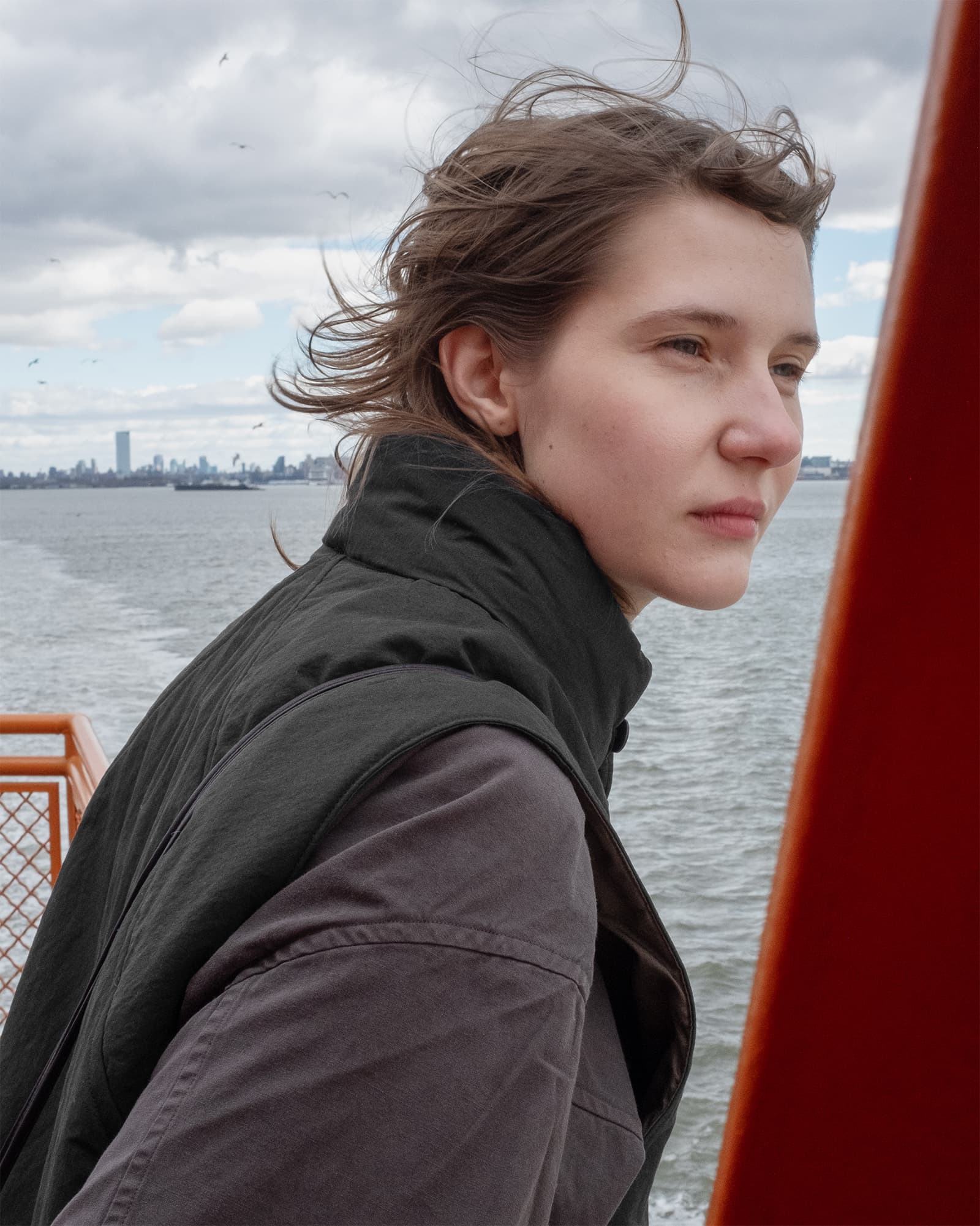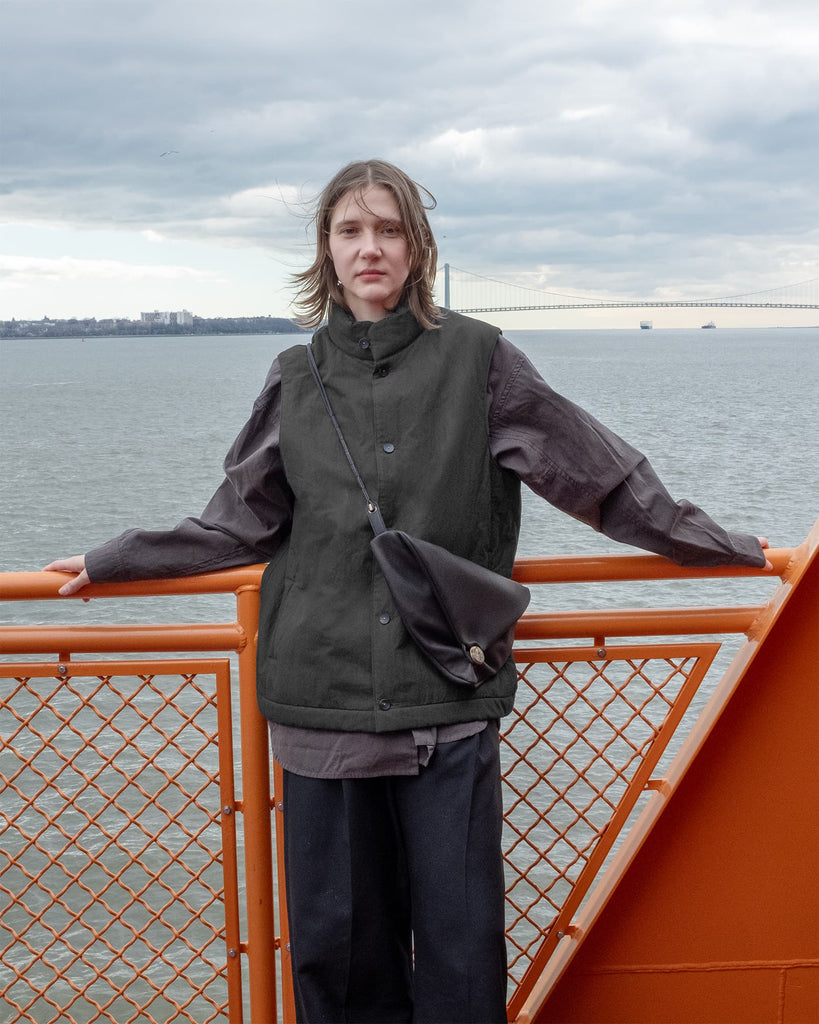 外出する時も、室内でもいろんなシーンで着ることができるベストです。中綿がウールだから、軽くて通気性があって温かいのです。高さのある襟がしっかり首を包み、熱を逃しやすい首元を温めます。着脱は、オリジナルのホーンボタン。格別の動きやすさと着心地です。
