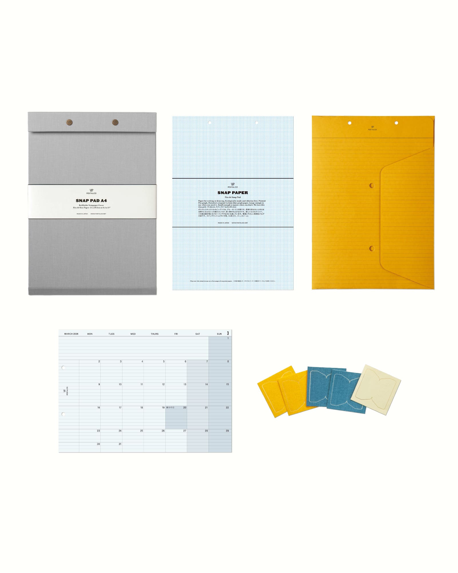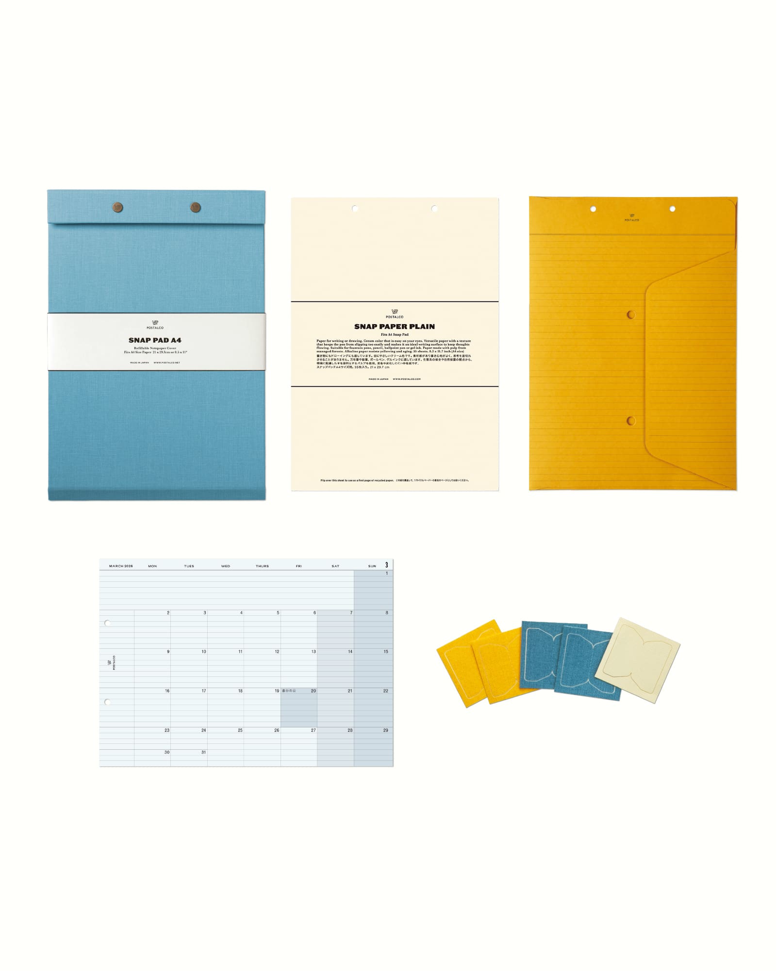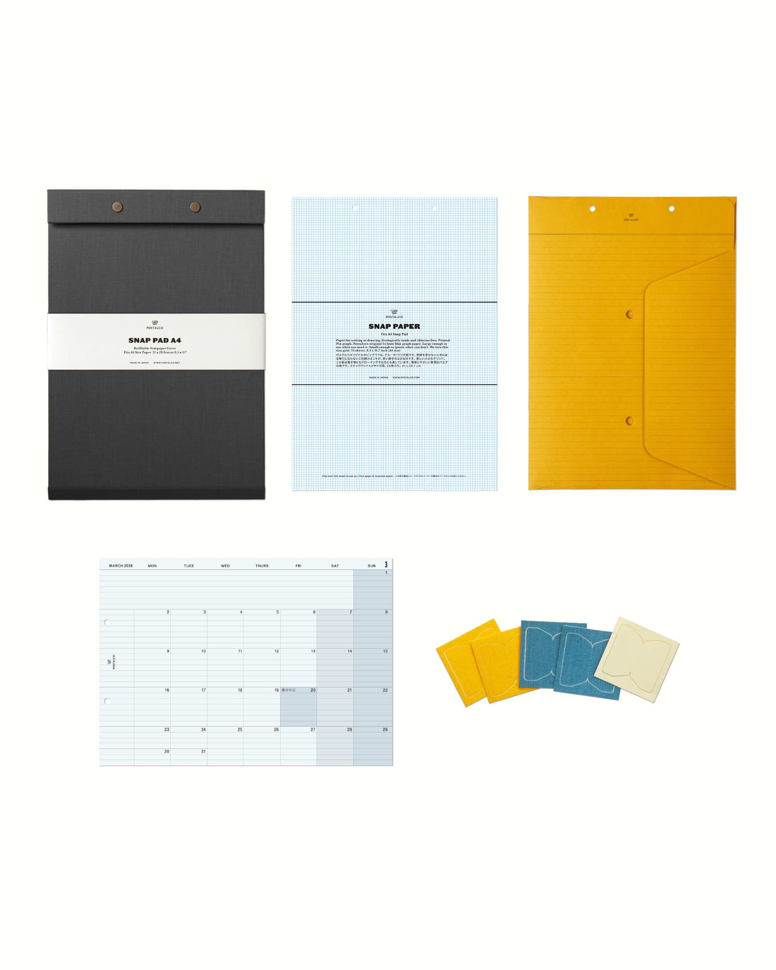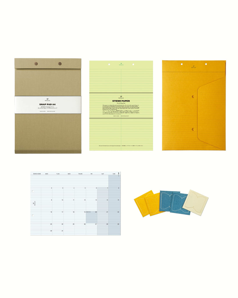 A4サイズの紙を入れて、用途に合ったノートブックをカスタマイズできるスナップパッド。パーソナルなメモや仕事の予定などを組み合わせてまとめておくことができます。タスクやドローイング、フィットネスの記録など大切なことを区分けしてファイリングしましょう。デジタルと紙とのバランスを取って、より有意義な毎日を過ごせるようになります。耐久性にすぐれたプレスコットン貼り。日本製。