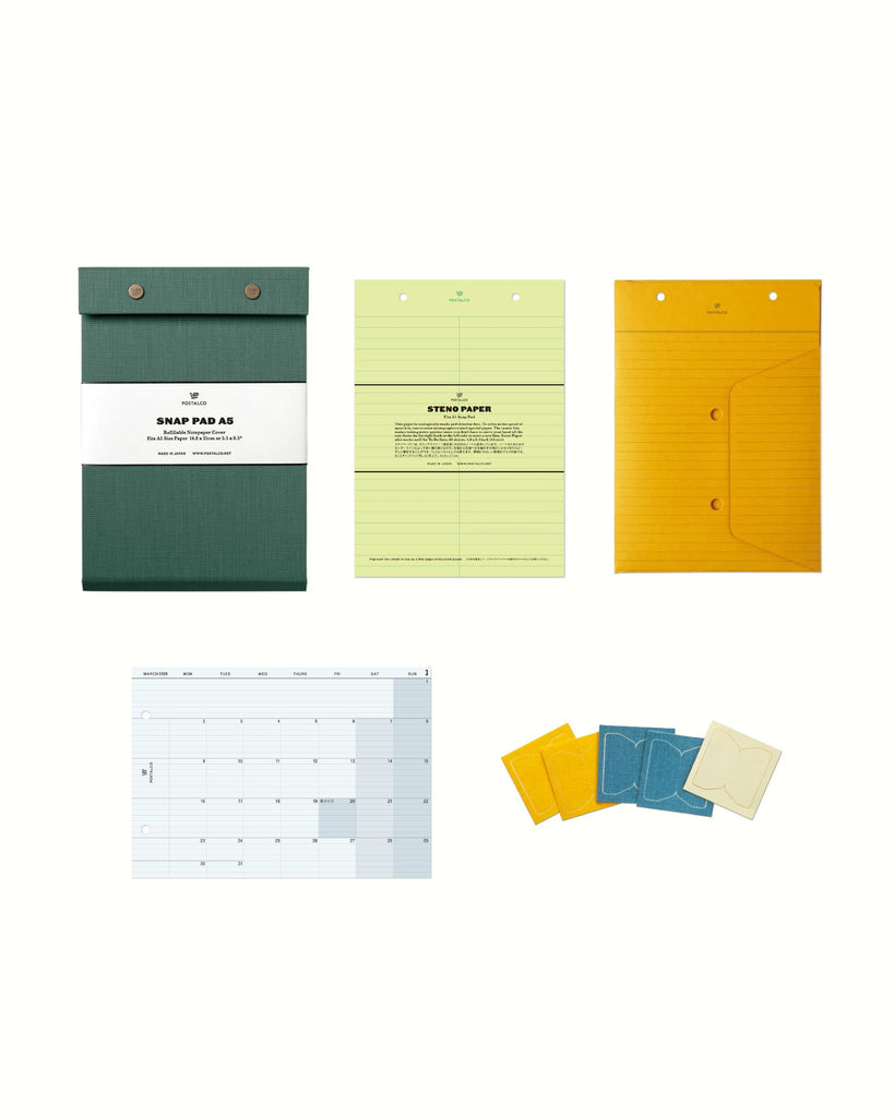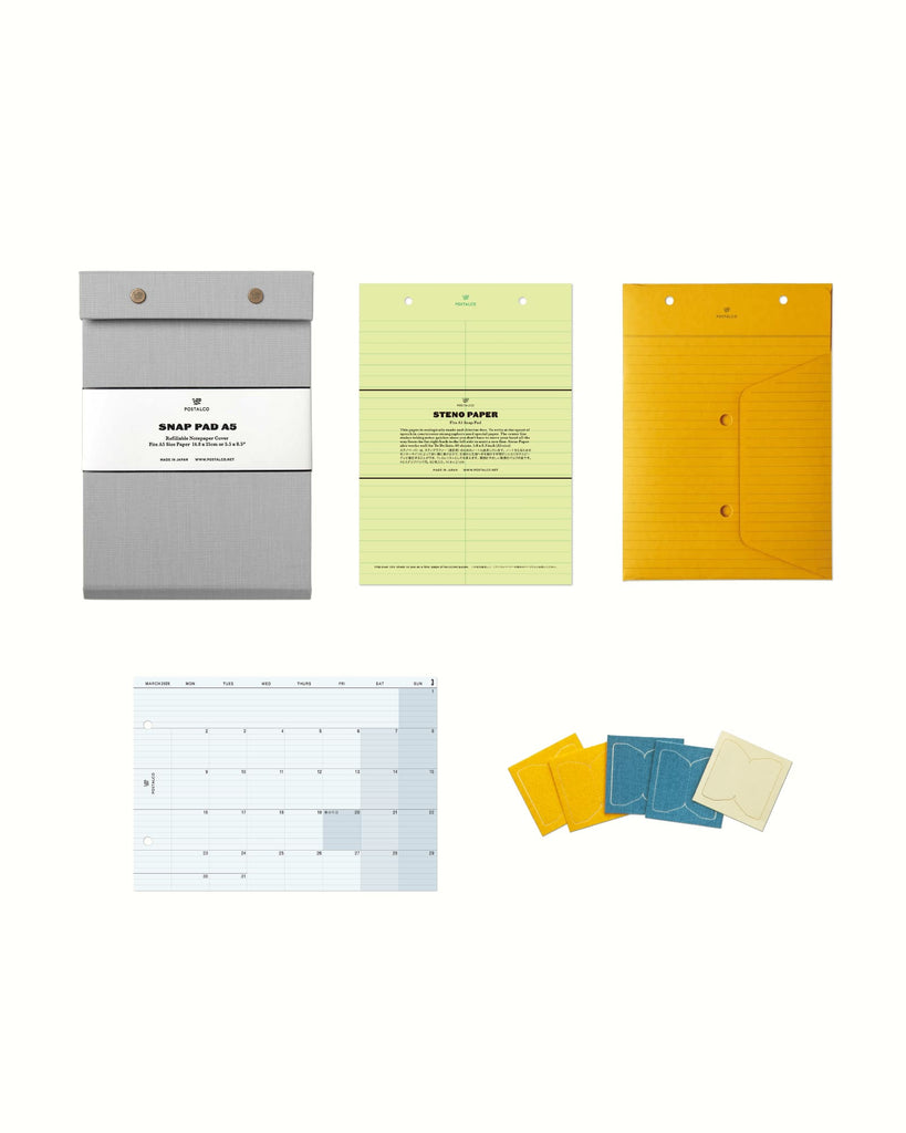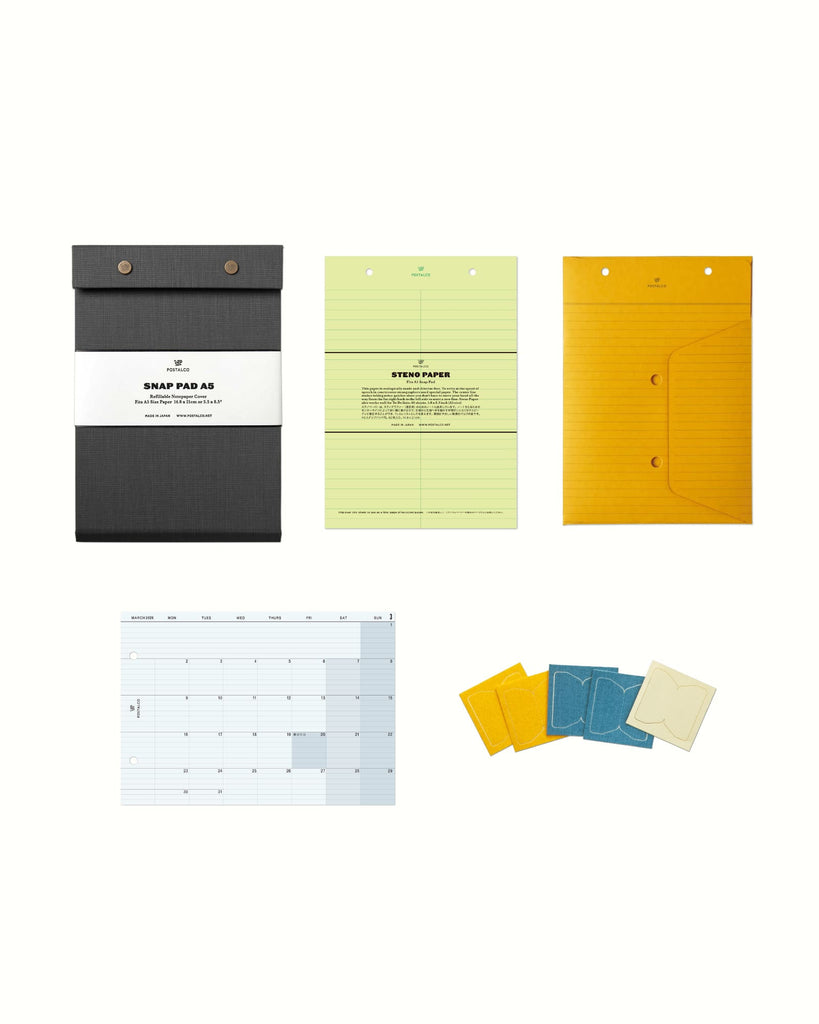 A5サイズの紙を入れて、用途に合ったノートブックをカスタマイズできるスナップパッド。パーソナルなメモや仕事の予定などを組み合わせてまとめておくことができます。タスクやドローイング、フィットネスの記録など大切なことを区分けしてファイリングしましょう。デジタルと紙とのバランスを取って、より有意義な毎日を過ごせるようになります。耐久性にすぐれたプレスコットン貼り。リフィルは別売りです。日本製。