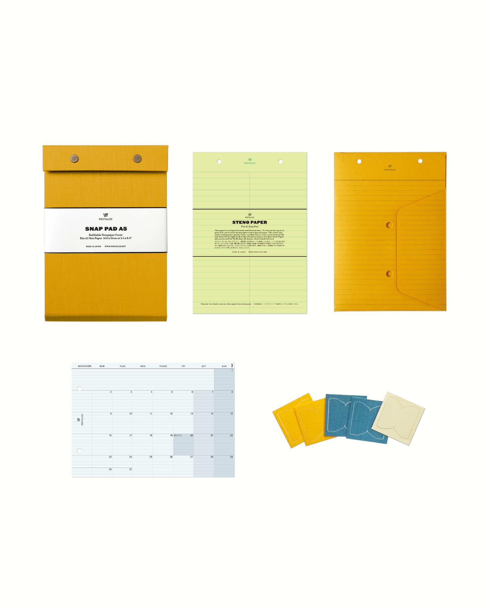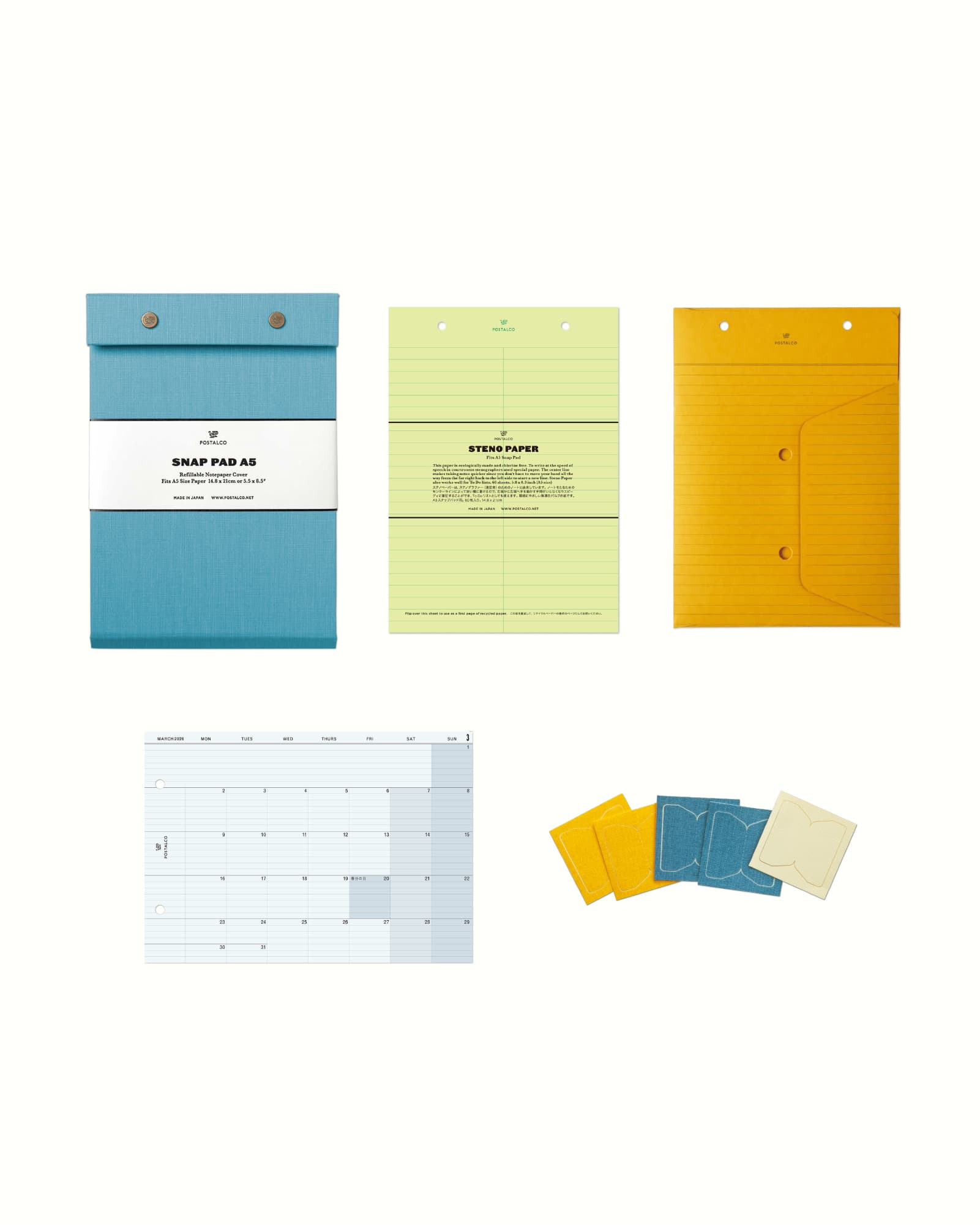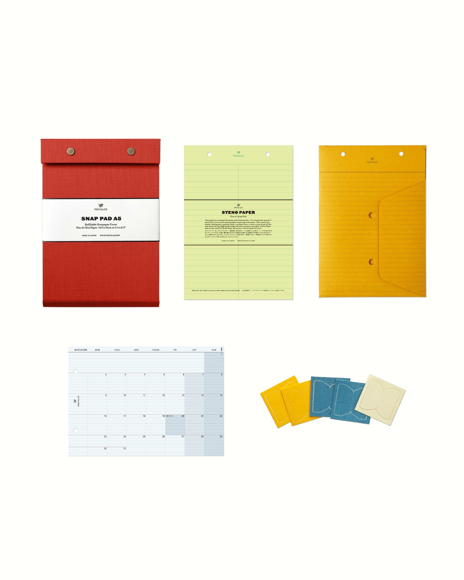 スナップペーパーA5: 55枚 / ステノペーパー A5: 60枚 / プレーンペーパーA5: 55枚