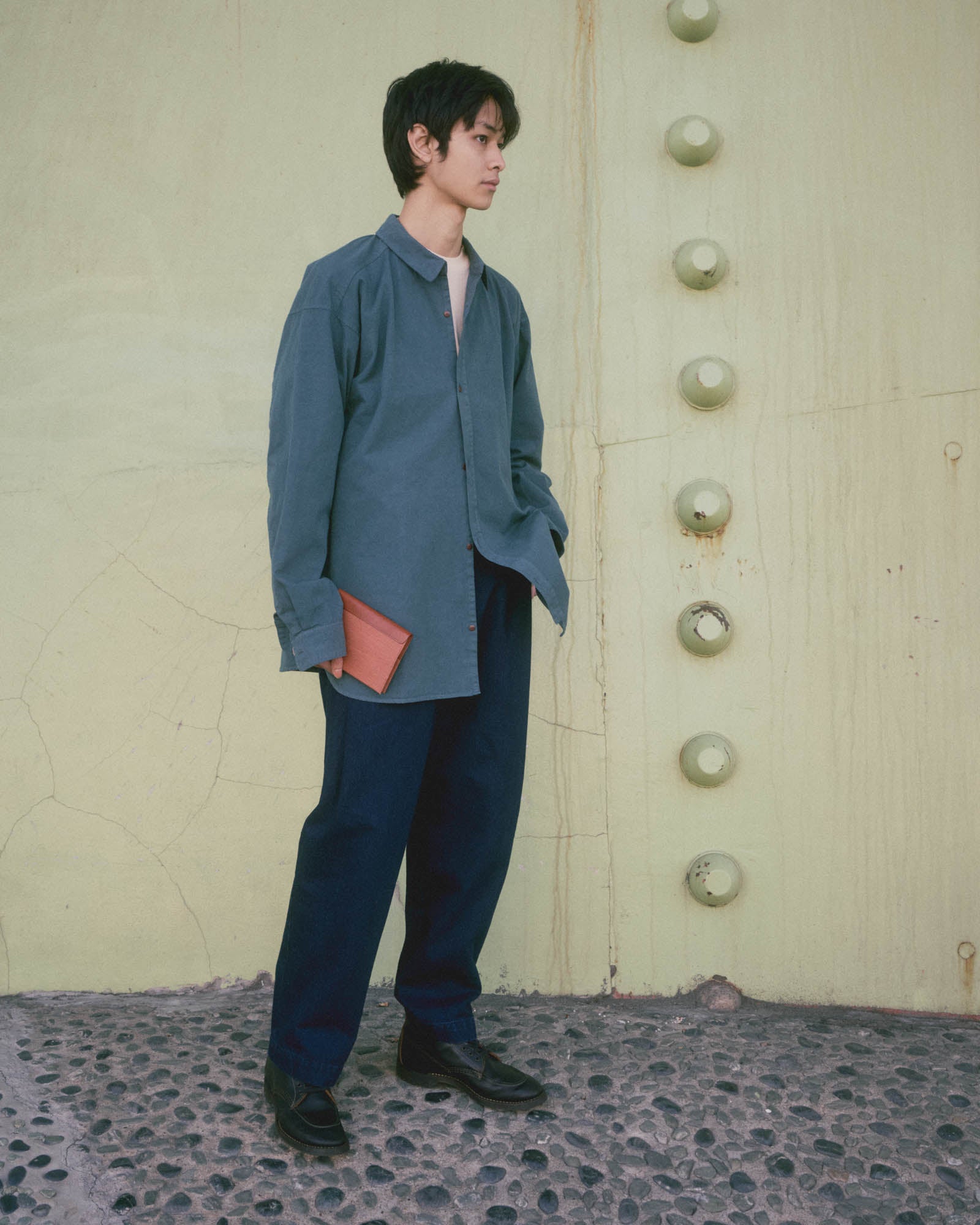 Tailored workwear that allows remarkable movement crafted with soft, thick Japanese cotton fabric.