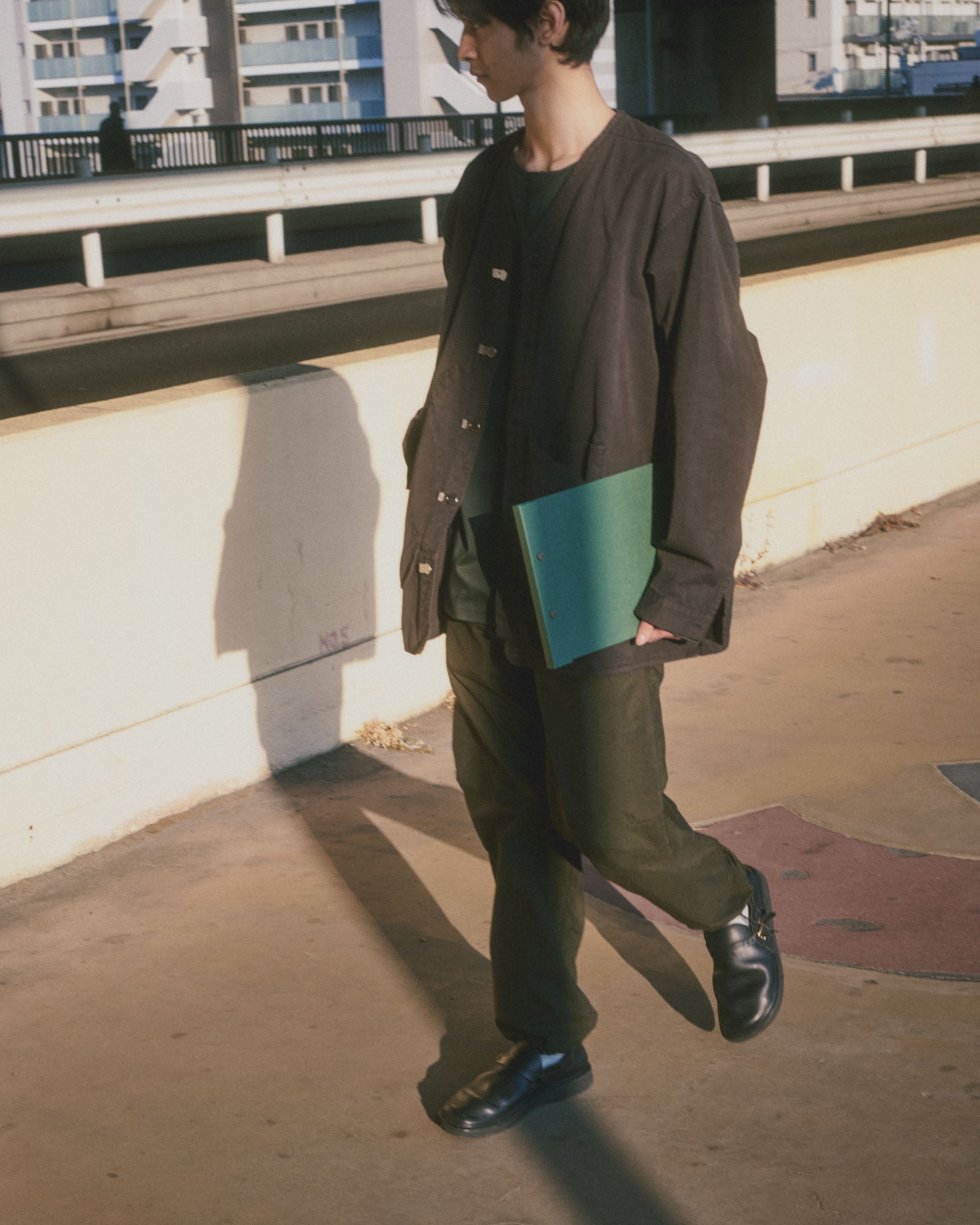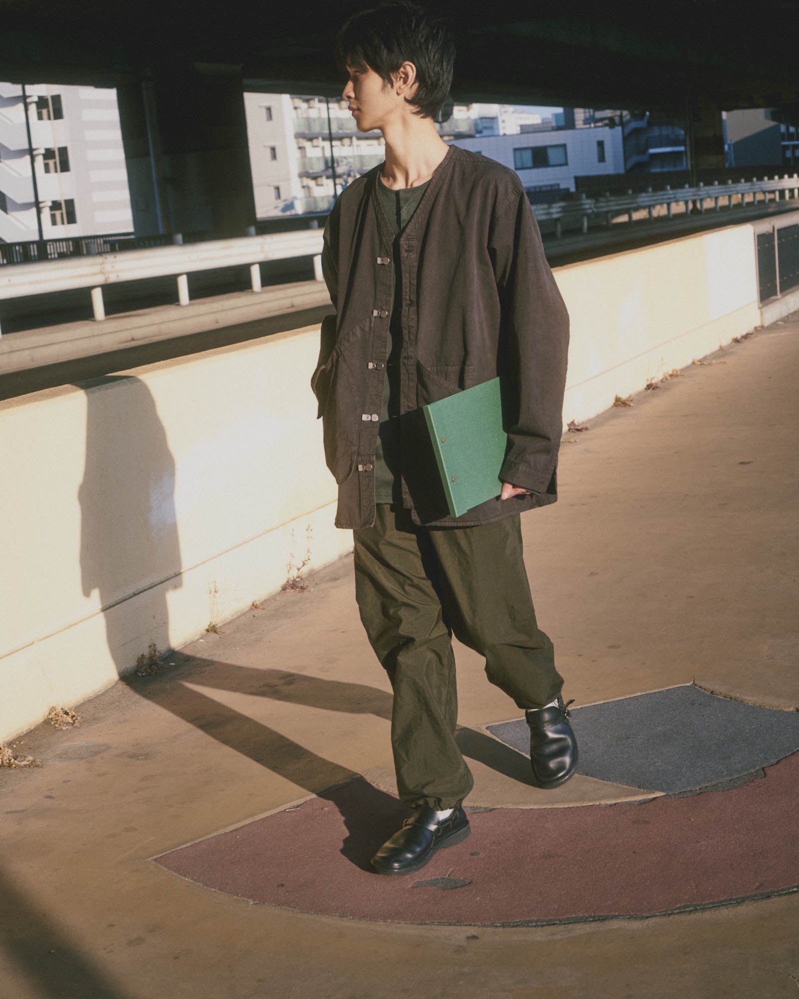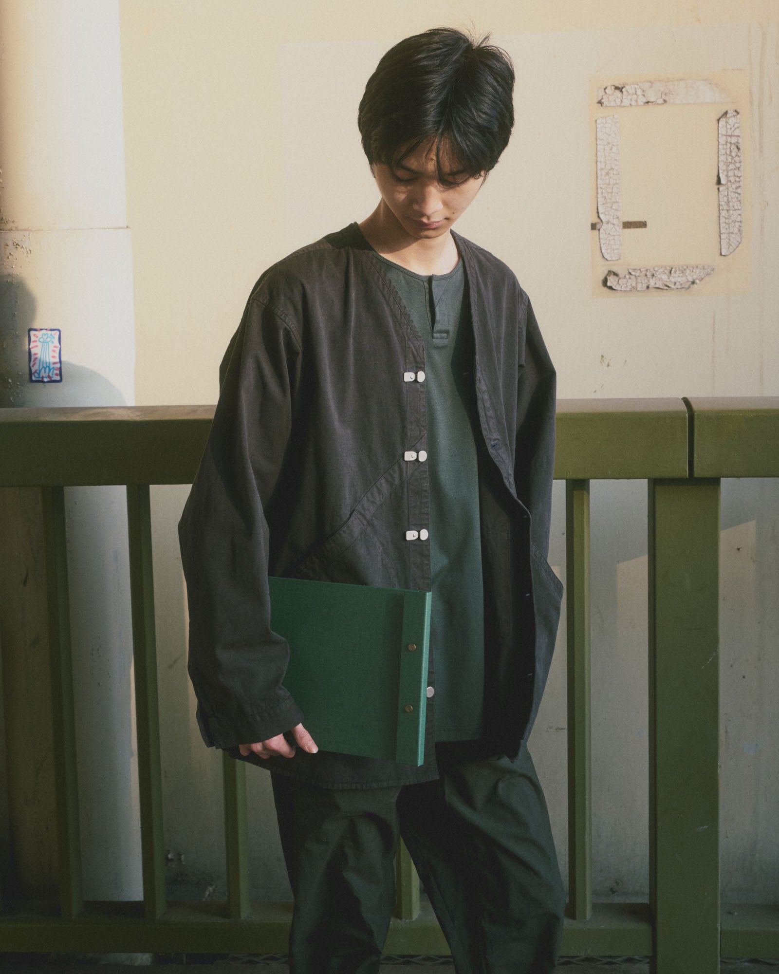 To allow maximum free movement we created a new kind of jacket. Our custom metal closures are satisfying to use. Pockets are placed for ease of use, so you can keep your essentials close at hand without feeling weighed down. And with its functional design and unique free arm construction, the Cabinet Jacket will be a staple in your wardrobe. It's the ideal blend of style and function, crafted with the attention to detail and quality that are hallmarks of Japanese craftsmanship. Fitted for both men and women. Made in Japan.