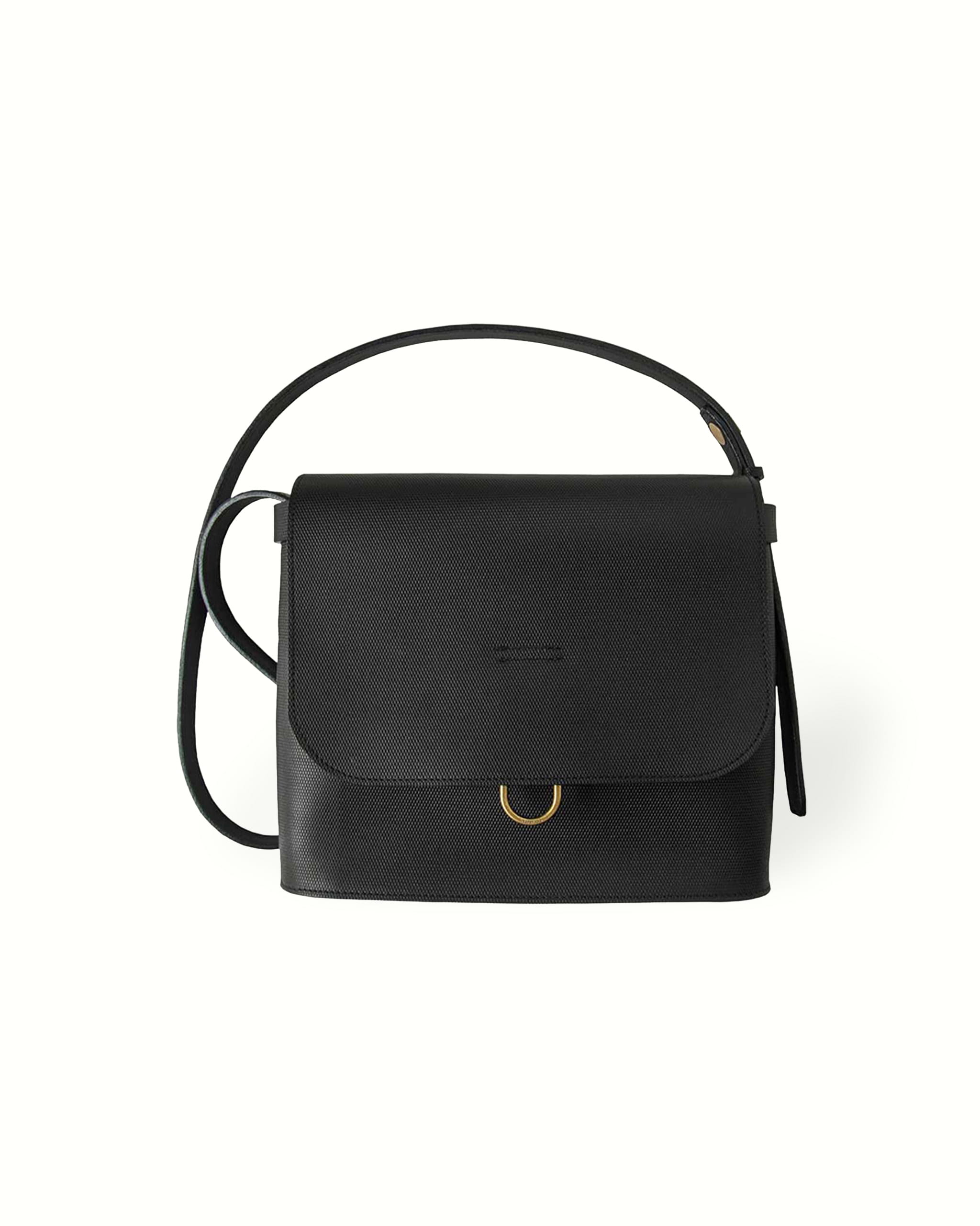 Beautiful leather that acquires a little bit more patina every time you use it. Original brass hardware with minimal forms for a clean look. Flap snaps closed for security. Strap adjusts in two places for effortless crossbody or over the shoulder carrying.