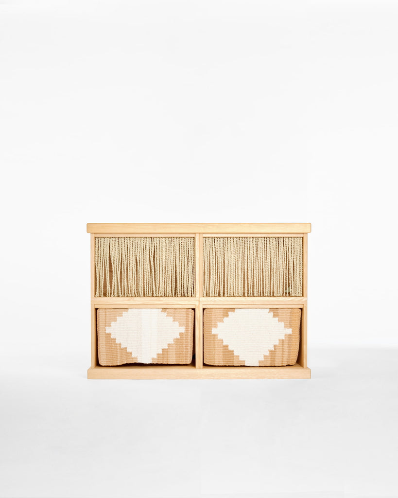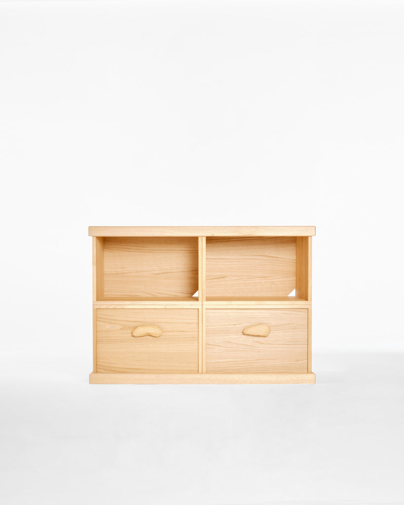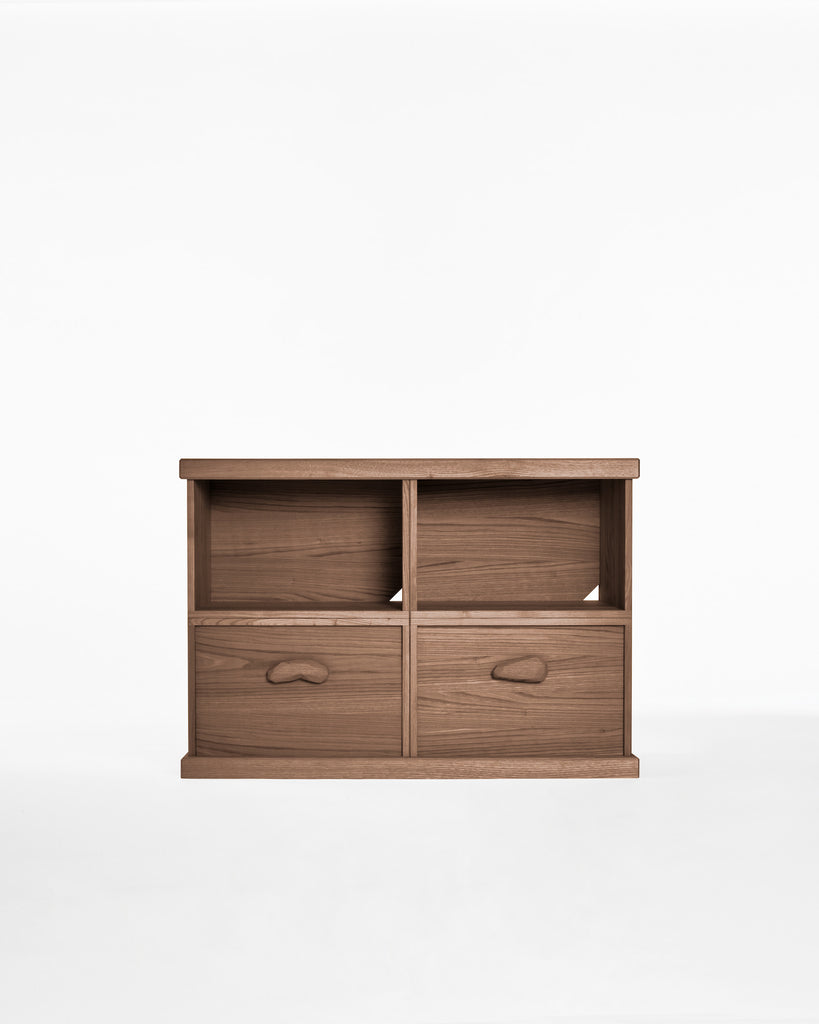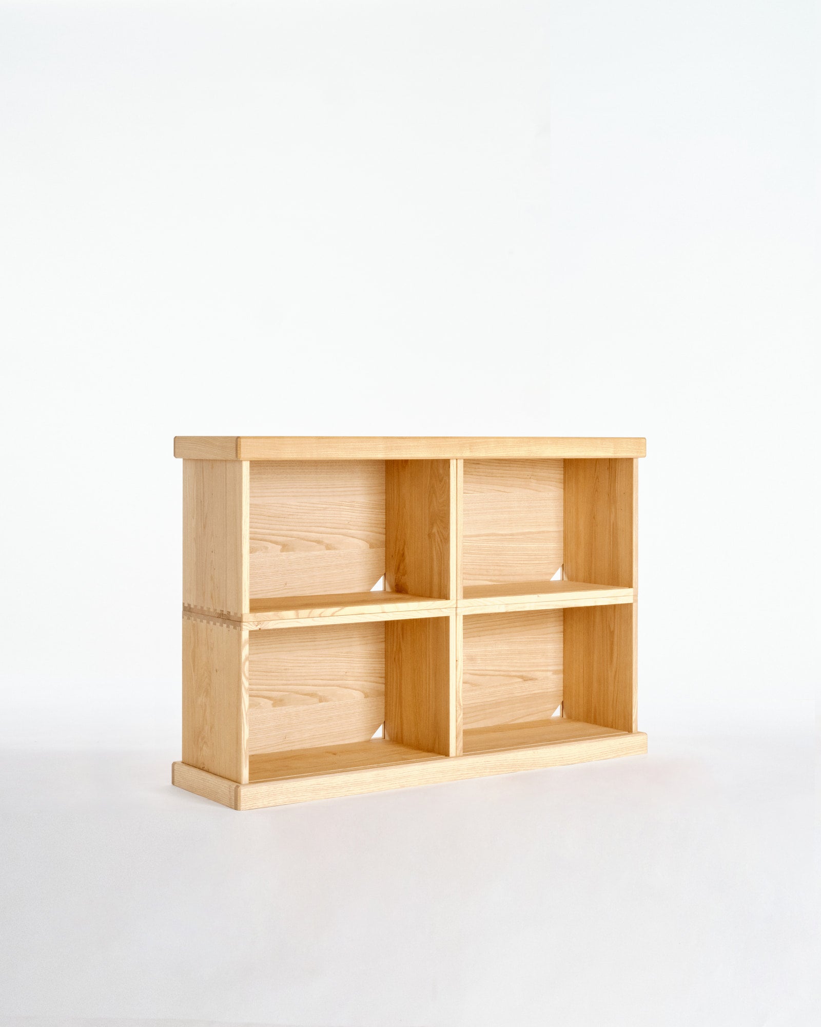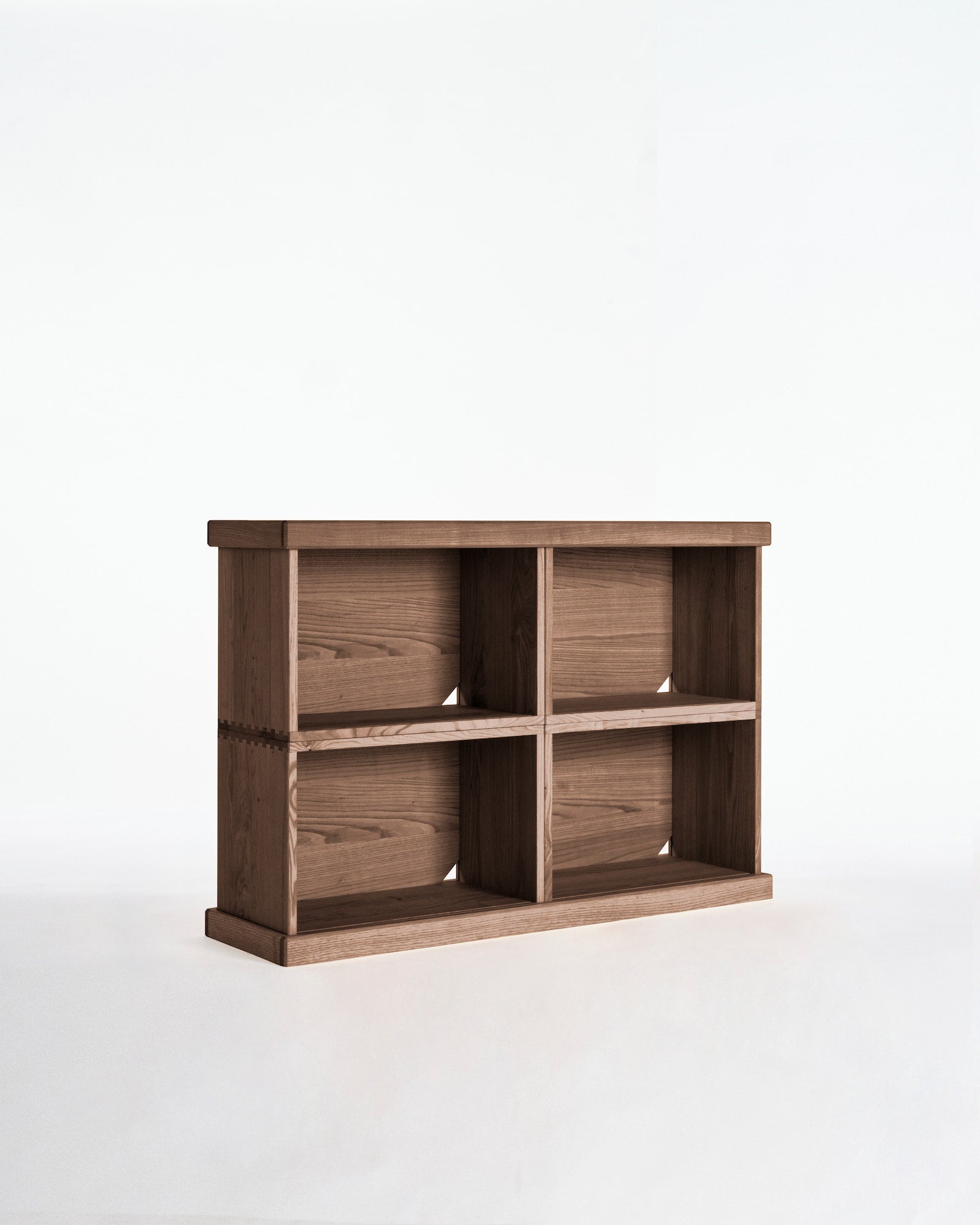 The STAKKO Block Shelf consists of functional wood boxes made from solid chestnut wood with a top and base pieces for stability. Use this for home, home-office or display. Assembly is easy without special tools, as the blocks connect simply with hand-tightened bolts. Made in Japan.