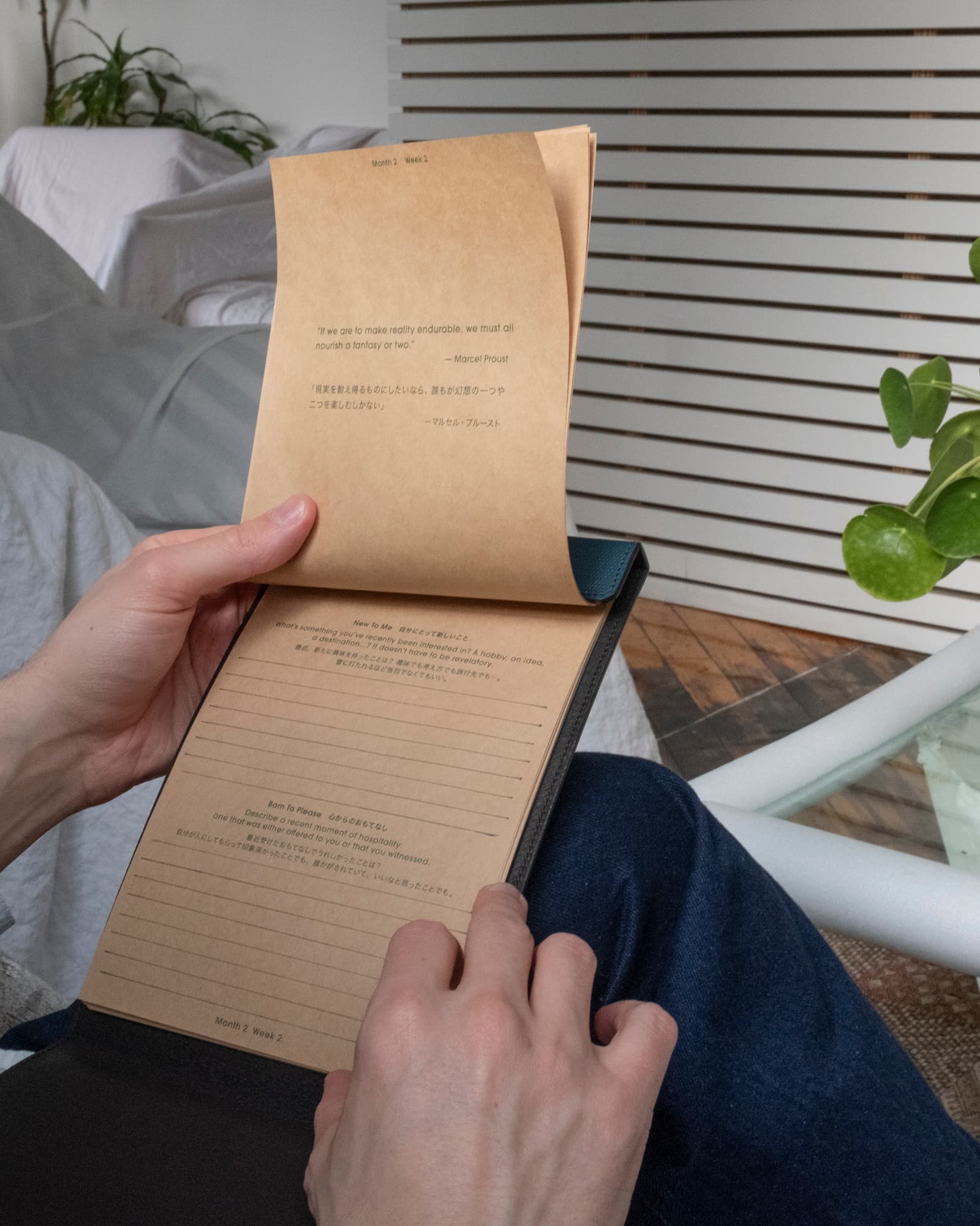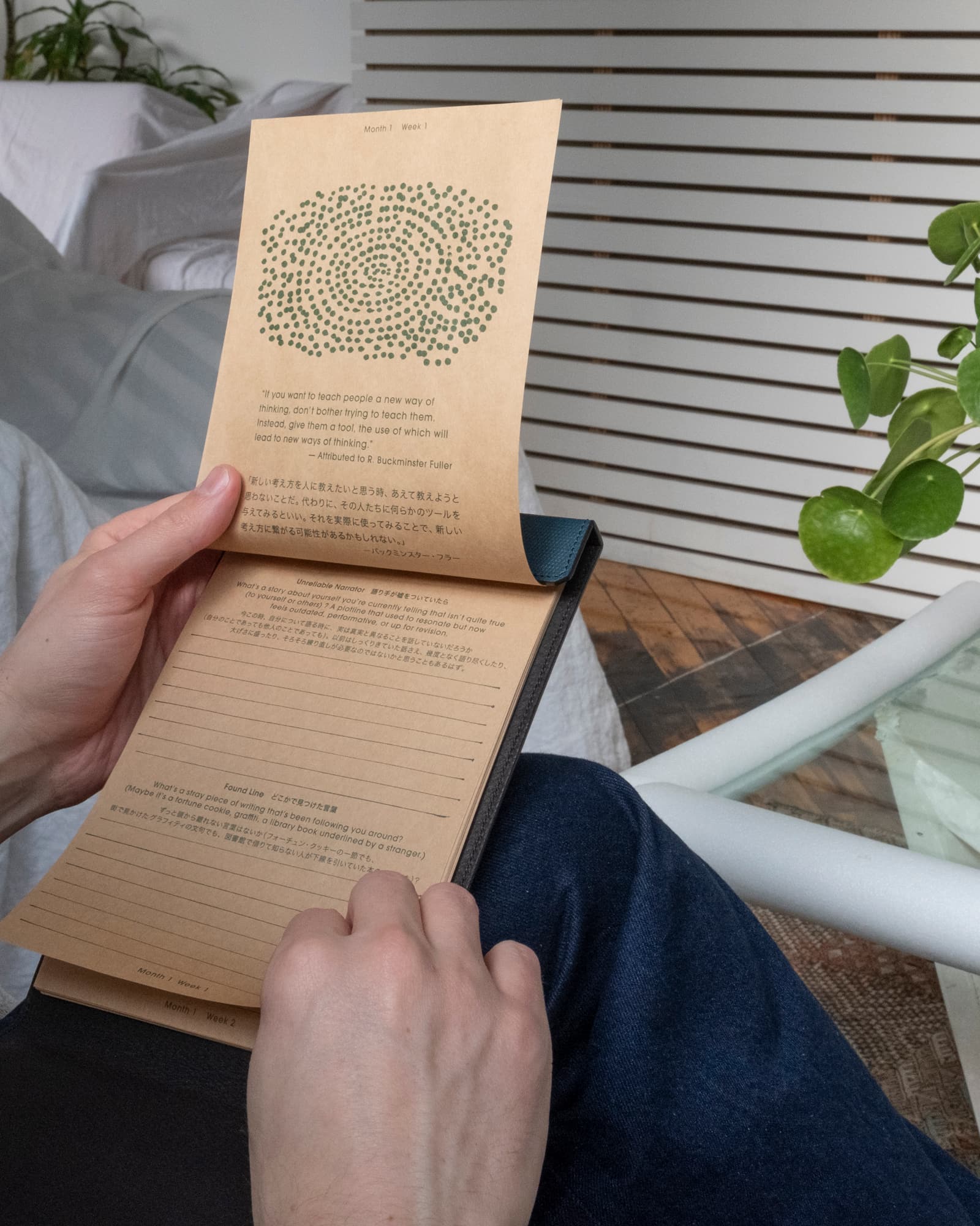 It's different from a diary. Instead of recording events, you're exploring what's happening inside your mind. Weekly prompts beautifully printed on craft paper that's satisfying to write on without feeling too precious to use. Portable enough to carry, spacious enough to think. (Snap Pad is not included)
