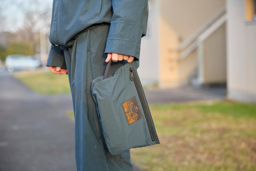 軽量で耐水加工されたポスタルコ仕様のオリジナル生地です。織り上げる前に繊維の1本1本にテクスチャーを施し、独特のドライタッチを実現。ナイロンの耐久性と耐水性を持ちながら、天然繊維のような快適な肌触り。ナチュラルなシワ加工が施されていて、旅行のお供にも最適です。PFASフリー。オモテ面に撥水加工、ウラ面に防水コーティングを施しています。耐水圧は500ml。リサイクルナイロン100%。日本製。