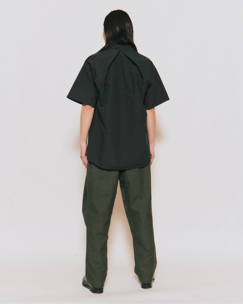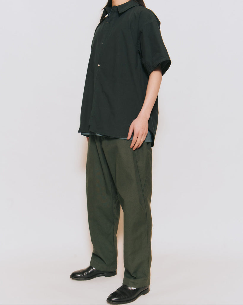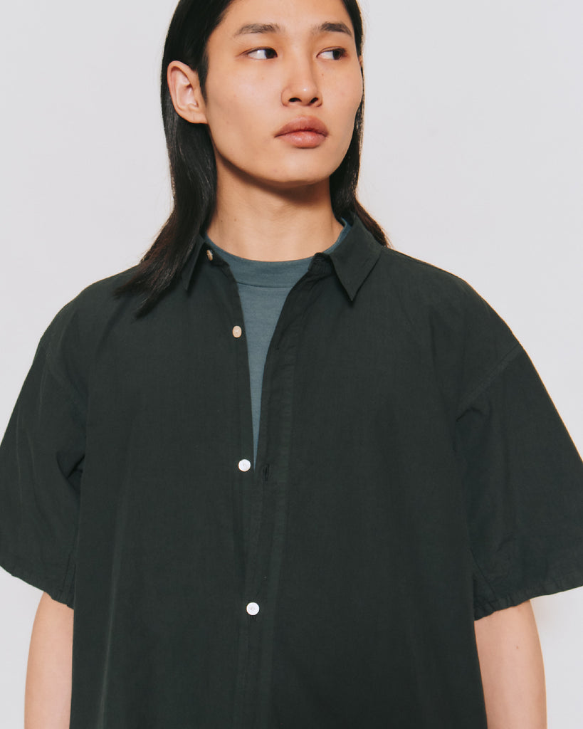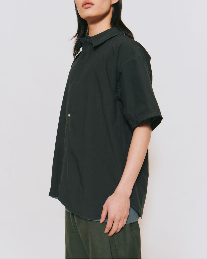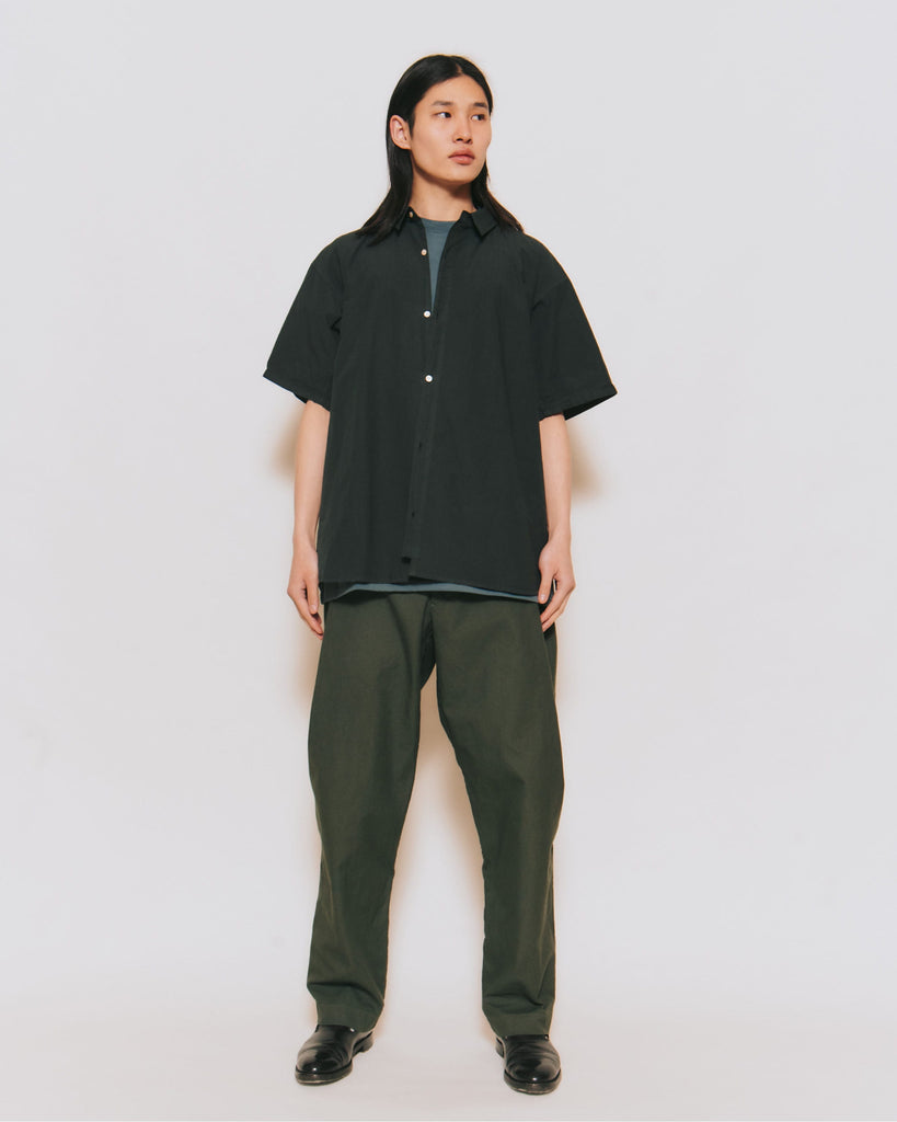 目の詰んだコットン素材なので、シャツのシルエットがきわだっています。染めによって、いっそう着心地がよく、着込んでいくと自然に馴染んでいきます。シャツをそのまま染めているため、洗濯による生地の縮みはあまりありません。