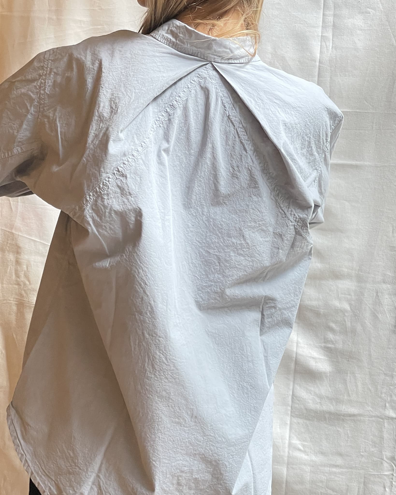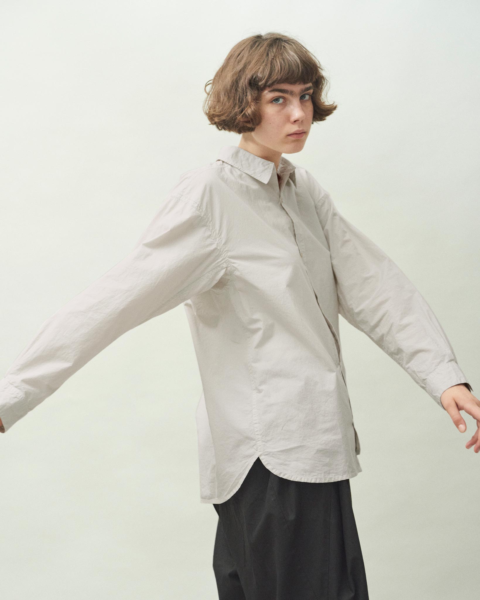 着ている服がしっくりこないと、その日は台無しです。最大限の動きやすさを作り出すために、新しいシャツを考案しました。肩にスパイラルな縫い目を入れることで、これまでのボタン掛けシャツでは感じられなかった自在な動きが生まれました。日本製のやわらかで目の詰まったコットンを素材に、ていねいに仕立てたシャツです。