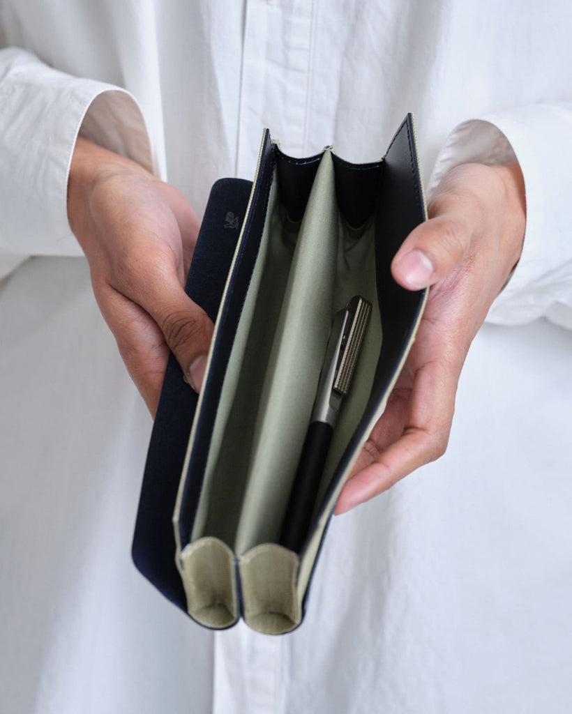 フラットにすると厚みは1㎝です。できるだけ薄く折りたためるようにデザインしました。ツールボックスの構造はとても難しいのですが、日本の職人さんとのコラボレーションで気づいた細部によって支えられています。
