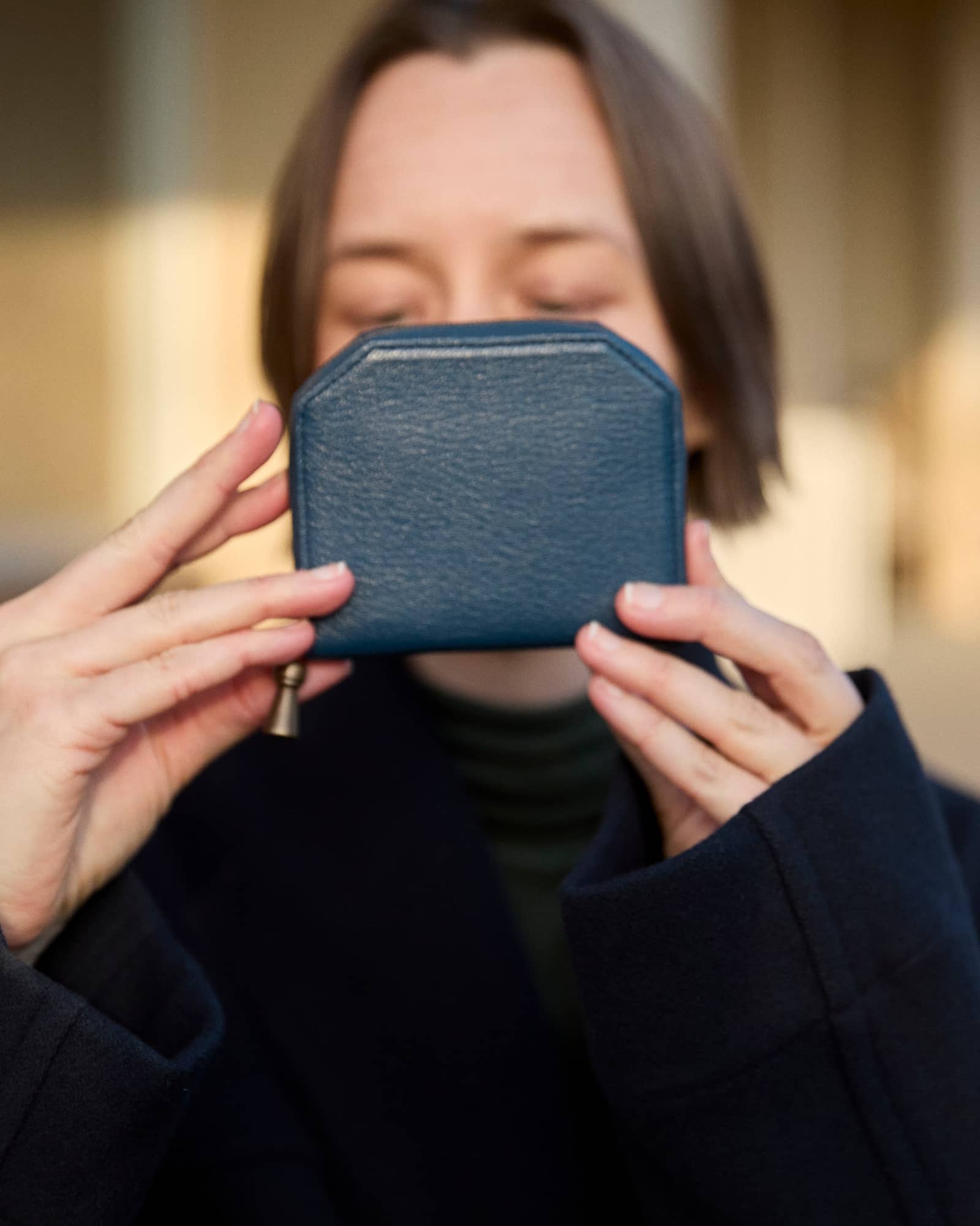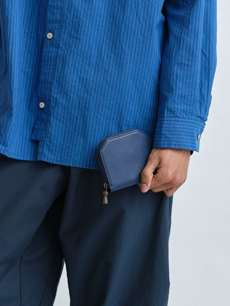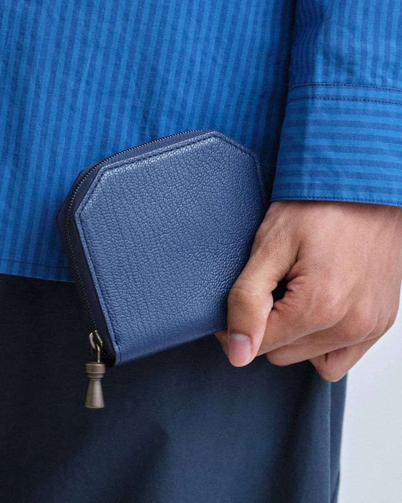 革は柔らかいのが持ち味なので、構造によってあまり重くなりすぎないようにしています。お札やカードはどちらもある程度の硬さがあります。何も入れていない時には、柔らかさが感じられるかもしれませんが、カードを入れてはじめて完成するように作られています。棚にディスプレイされている時はよく見えても、実際に中にものを入れてみると、硬かったり使いにくかったりすることがないようしたいと考えています。