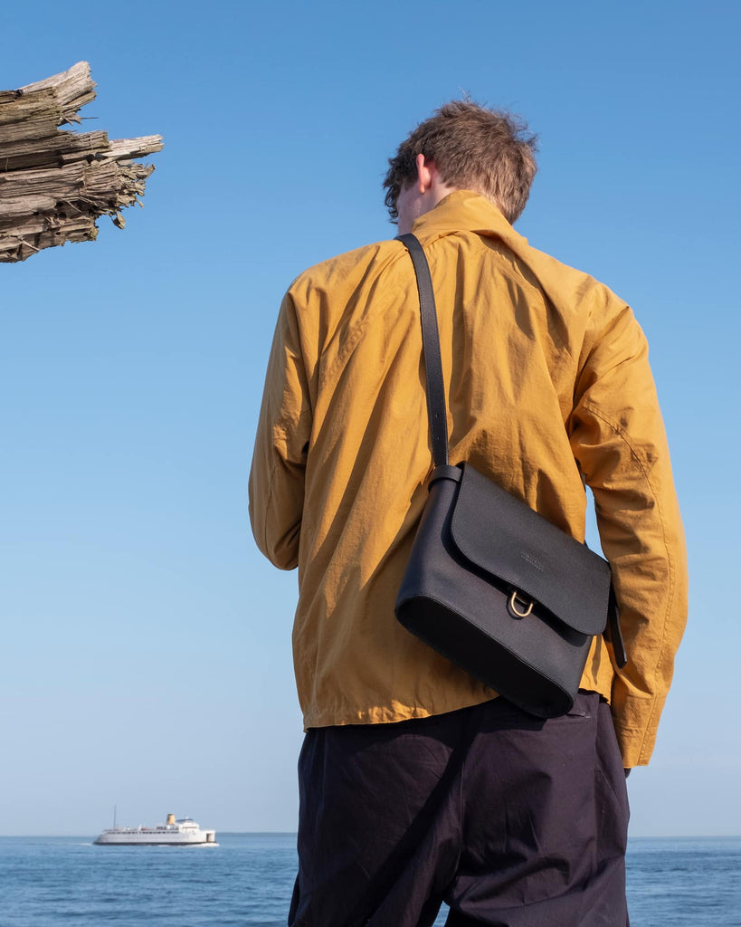 美しい革は、使い込むほどにパティナが増します。オリジナルの真鍮製の金具が、ムダのないフォルムで見た目もスッキリしています。フラップ式でしっかりと閉められるので安心です。ストラップで二箇所を調整でき、クロス掛けでも肩掛けでもOKです。