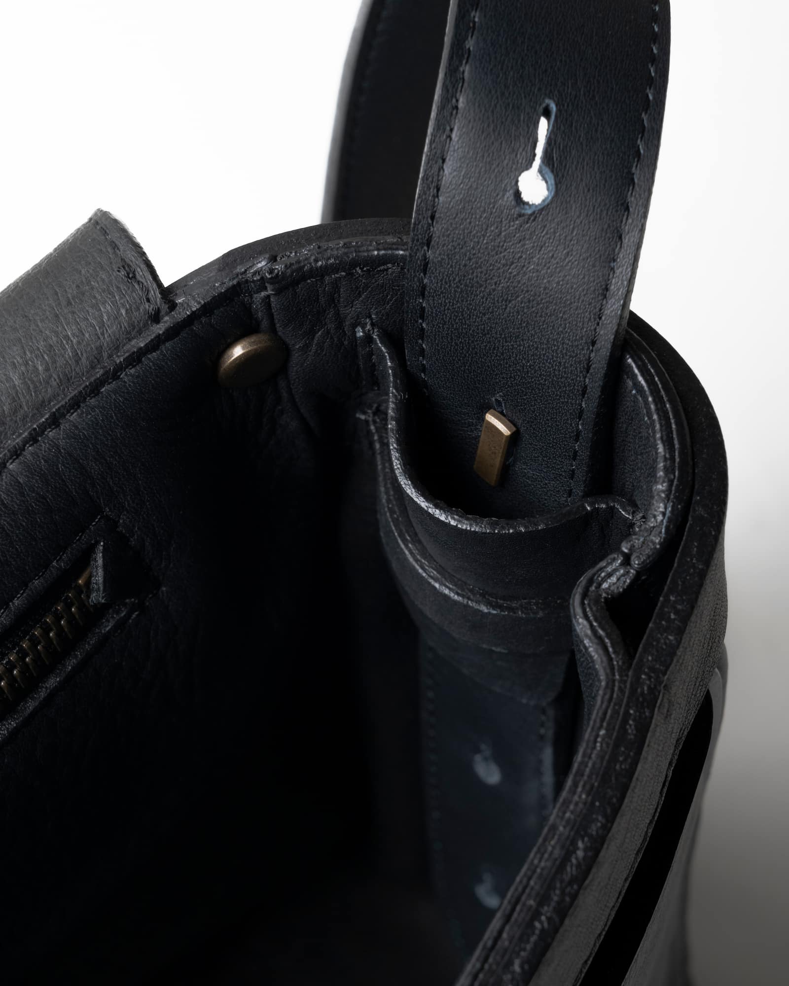 昔のパラシュートに使われていた金具から発想を得た、オリジナルのUロック。Uパーツを引き上げるとフラップが持ち上げられ、片手でも簡単に着脱できます。