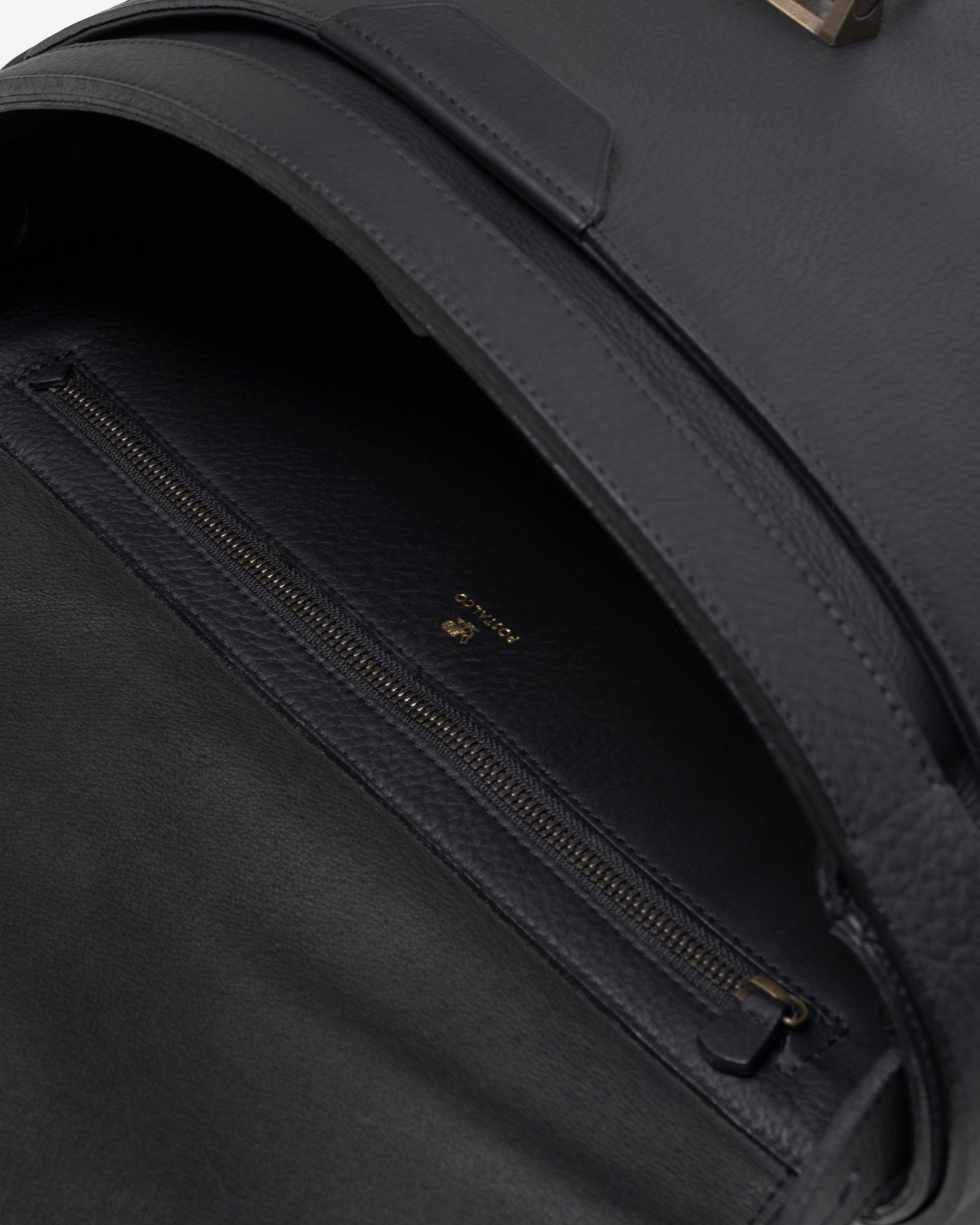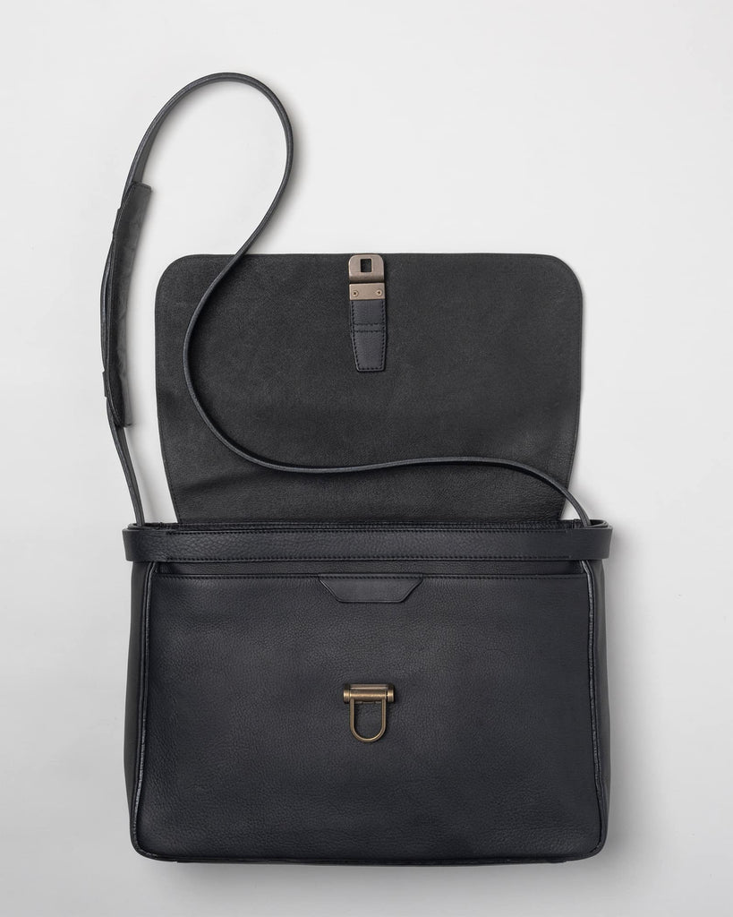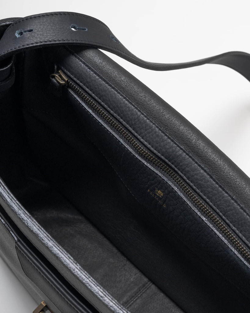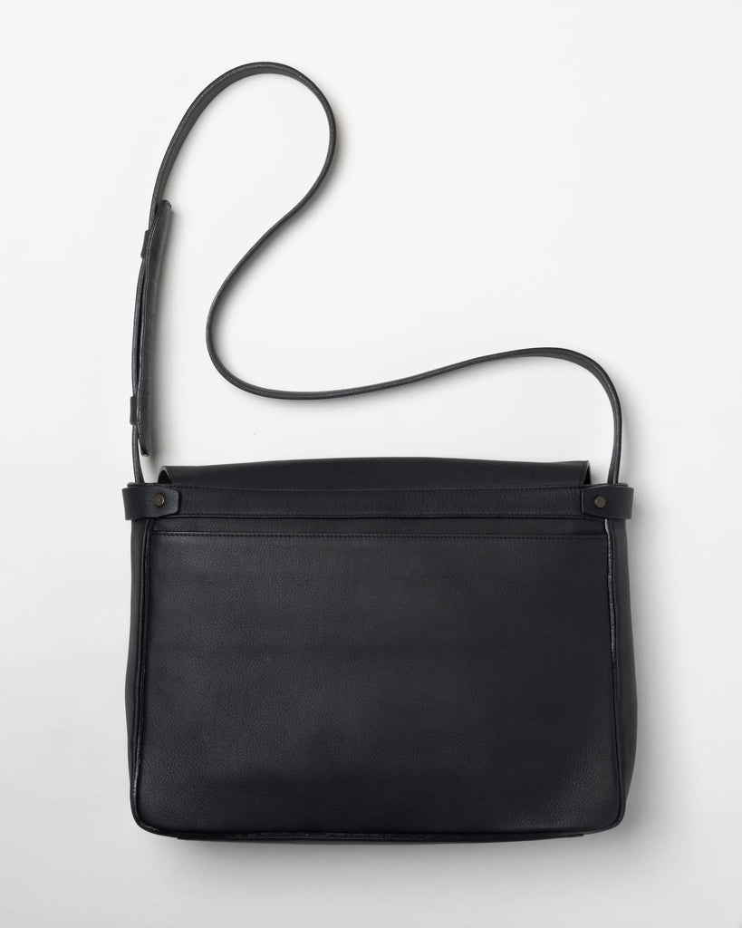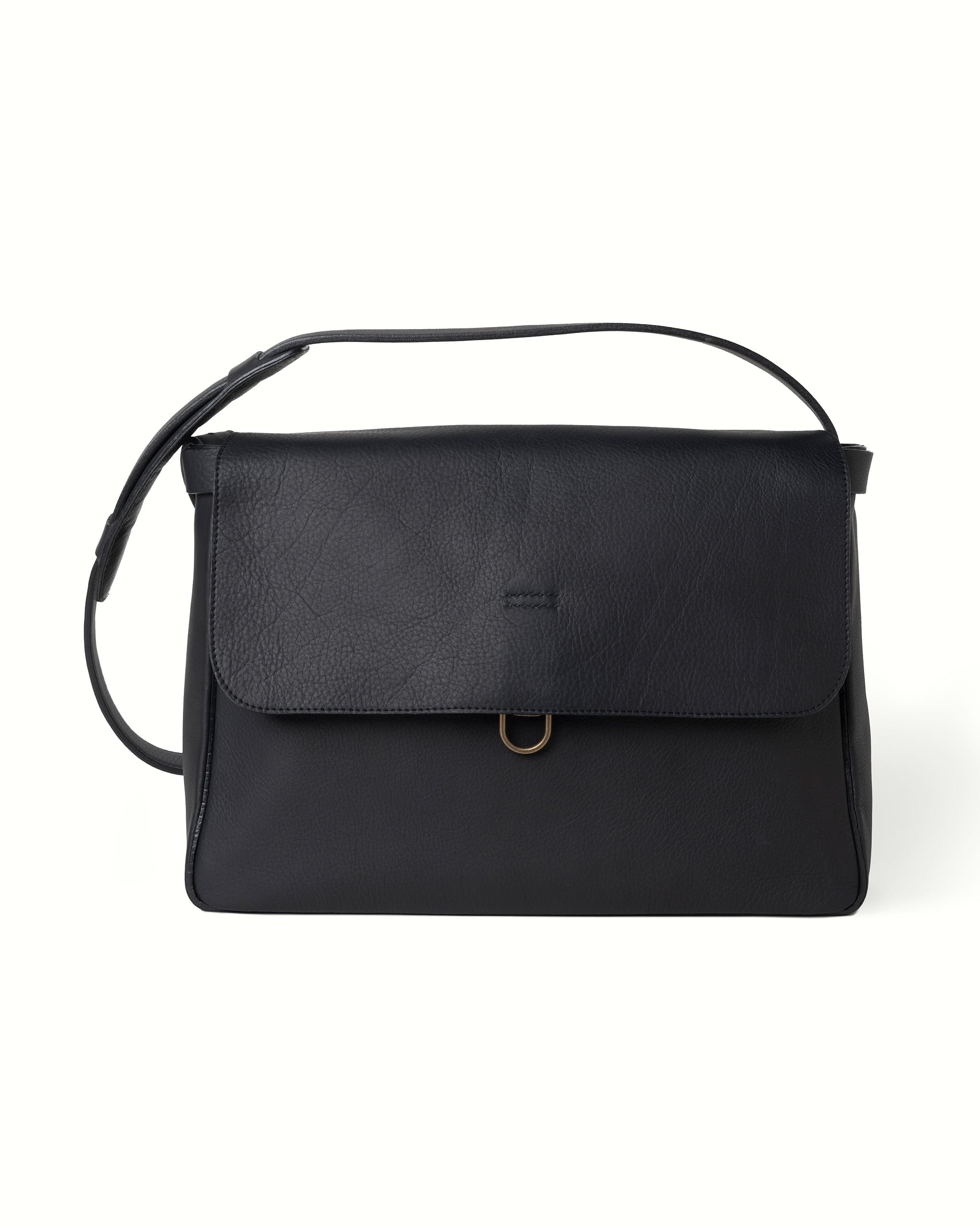 たいせつな手紙を配達してくれたポストマン。その肩にかかっていたのがメールバッグでした。前面と背面にオープンポケット。ミルレザーとピッグスキンの裏地。柔らかな手触りで、はじめから体にフィットします。A4サイズの書類がゆったり入り、16インチの Mac Book Pro も入れる事ができます。日本製。